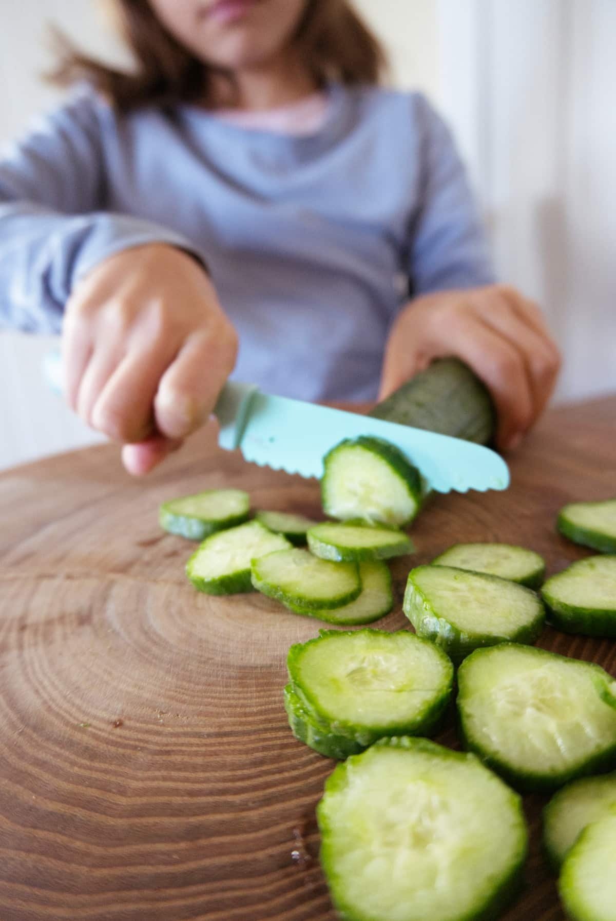 Het mes is veilig en ergonomisch ontworpen, waardoor kleine handjes het makkelijk kunnen vasthouden. Kinderen kunnen hiermee fruit en zachte groenten snijden en zo een echte kookervaring opdoen, zonder de risico’s van een scherp keukenmes.