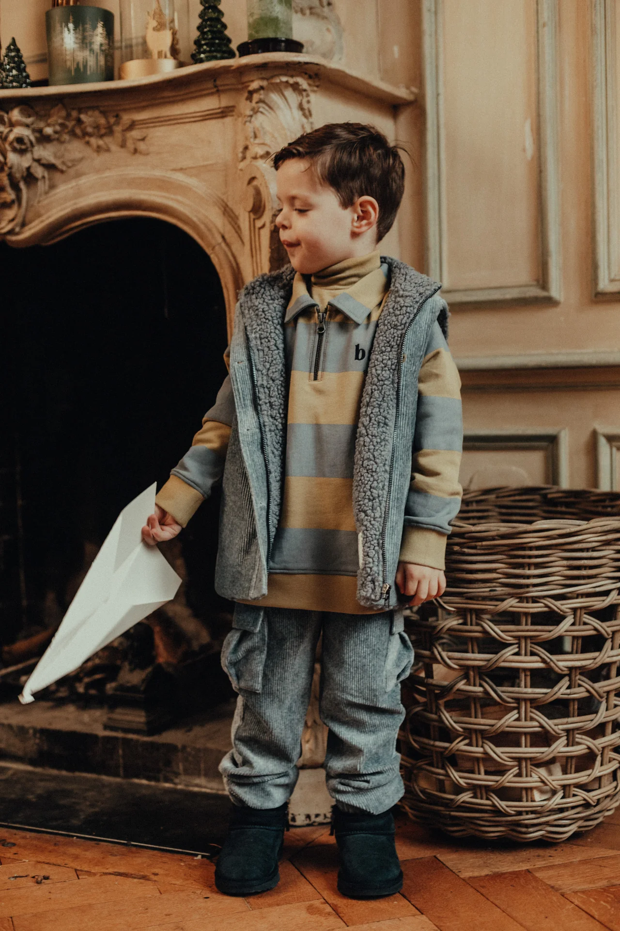 De Wez rib cargo broek van Baje Studio is een comfortabele en stoere keuze voor jongens die graag spelen en bewegen. Het zachte ribmateriaal voelt warm en flexibel aan, terwijl de cargo zakken een trendy en speelse uitstraling geven.