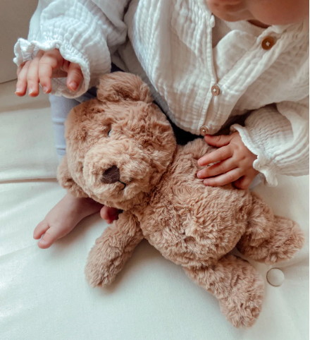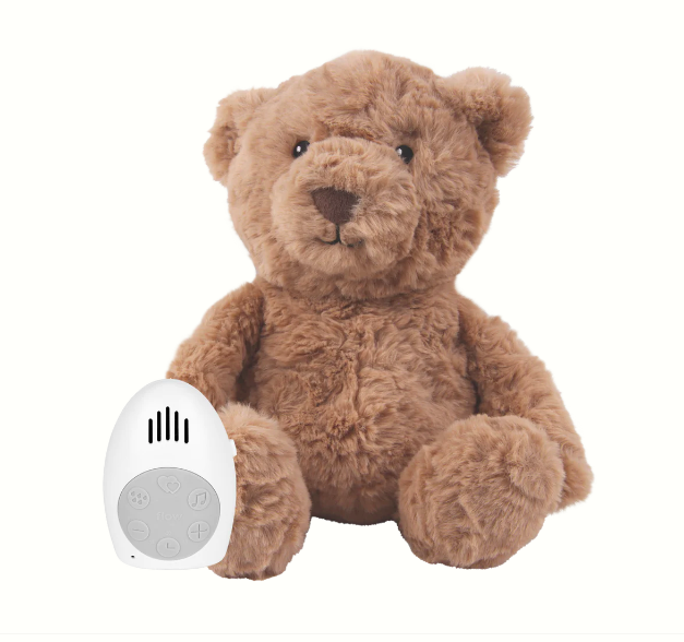 Deze hartslagknuffel van Flow Amsterdam zorgt ervoor dat je kindje rustig in slaap valt. Je kunt ook kiezen voor een witte ruis of 2 andere rustgevende melodieën. Met de timer kun je instellen na welke tijd de knuffel automatisch uitschakelt en wanneer je kindje begint te huilen, zal de knuffel automatisch weer aangaan. Deze knuffel is er ook in het beige.