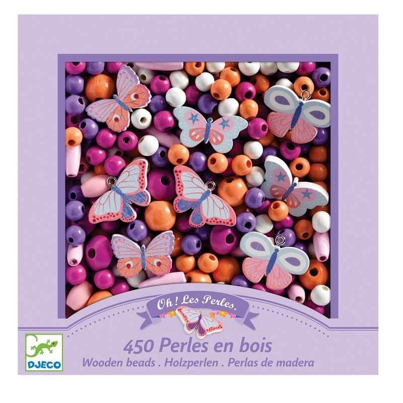 De Djeco houten kralenset – Vlinders is een vrolijke knutselset vol kleur en fantasie. In deze doos zitten meer dan 450 houten kralen in verschillende vormen en zachte tinten, perfect op elkaar afgestemd voor een mooi en harmonieus resultaat.