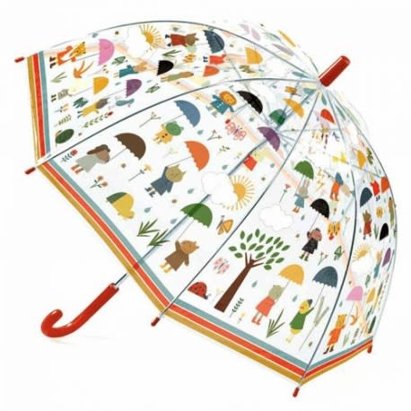 De Djeco kinderparaplu – Diertjes in de Regen is een lieve en stijlvolle kinderparaplu met zachte kleuren en tedere illustraties van diertjes die samen schuilen voor de regen. Dankzij de transparante kap kan je kind goed zien waar het loopt, ook tijdens een stevige bui.