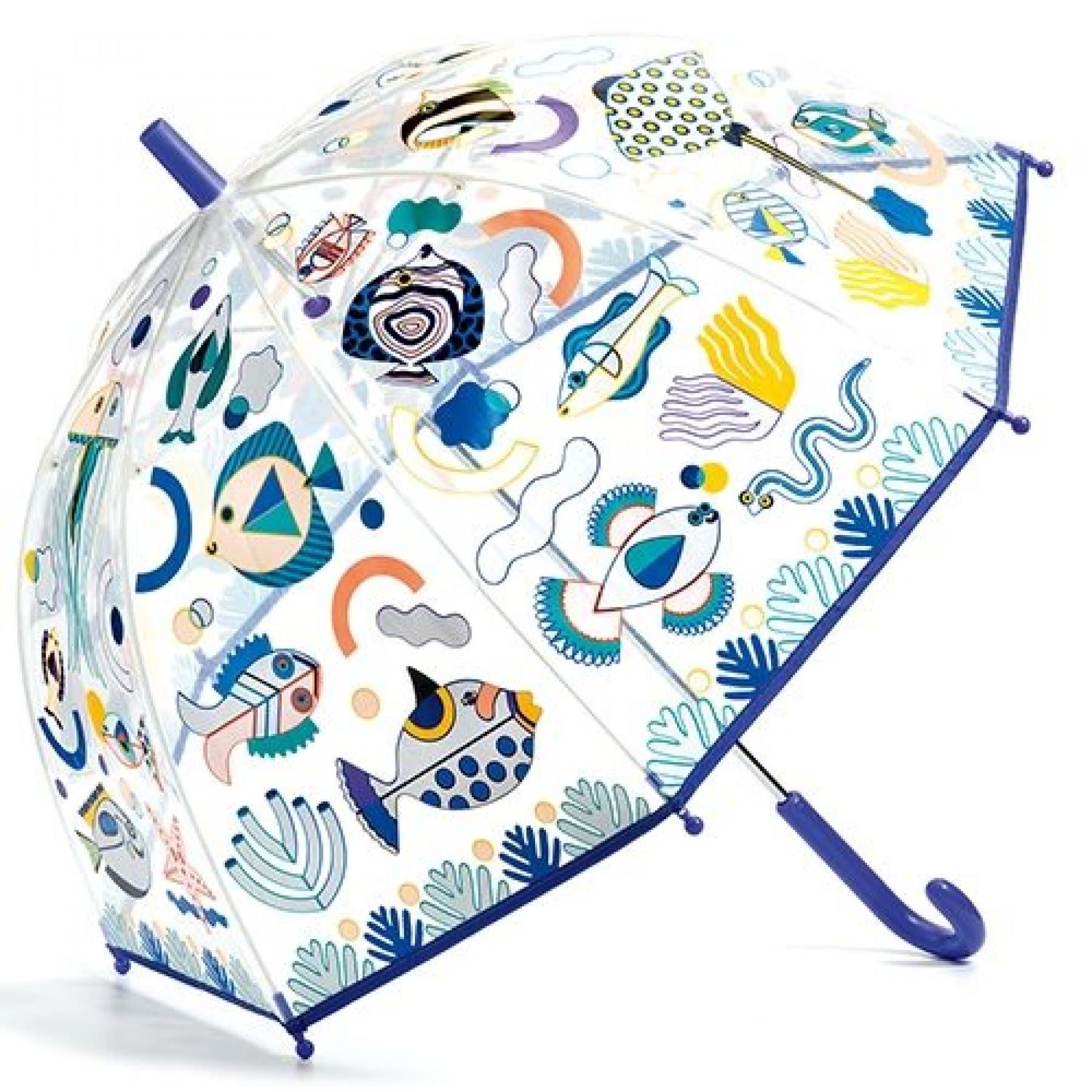 De Djeco kinderparaplu – Vissen maakt van regen een magisch moment! Deze chique en praktische paraplu is versierd met vrolijke vissen die van kleur veranderen zodra ze nat worden. Wanneer de paraplu droogt, verdwijnen de kleuren weer — telkens opnieuw een verrassing!