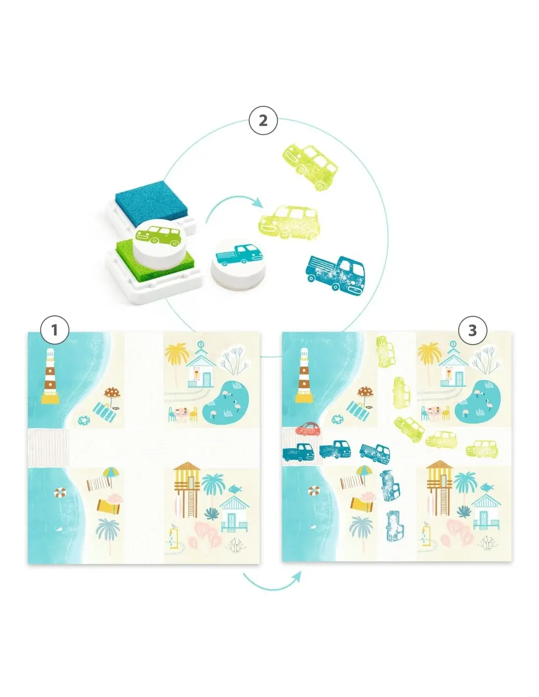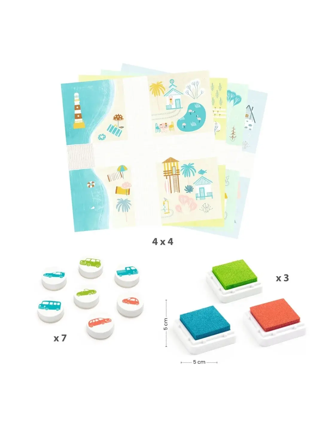 De Djeco stempelset – Voertuigen is een leuke en creatieve activiteit voor kinderen die van auto’s en verkeer houden. Met 16 geïllustreerde kaarten kunnen ze hun eigen decor maken en versieren met 7 verschillende stempels.