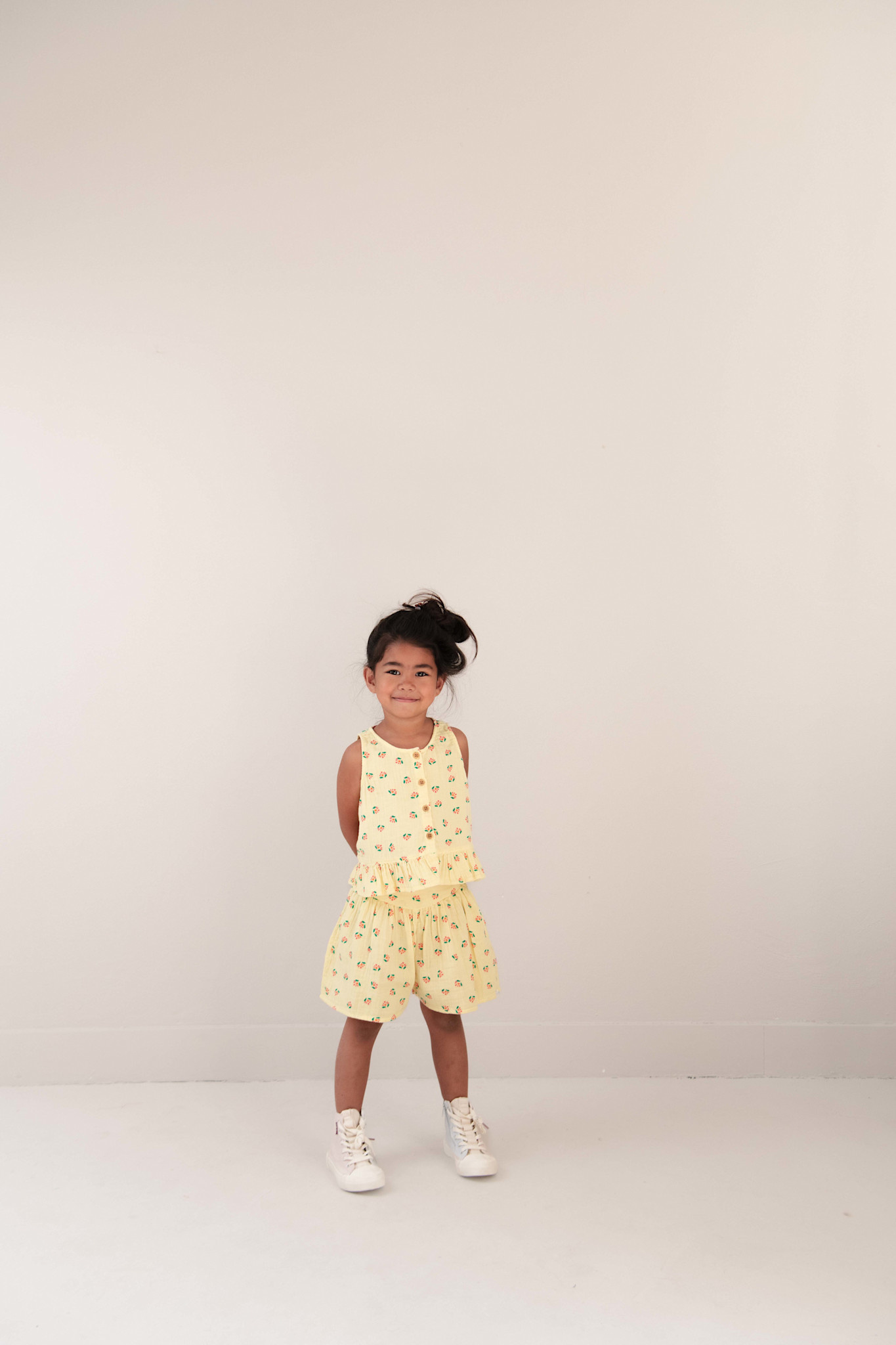 De Summer shorts in Flower AOP soft yellow van Jenest zijn gemaakt voor warme dagen. Deze wide fitted shorts zijn vervaardigd van zachte en lichte double gauze, wat zorgt voor een luchtig en comfortabel draaggevoel.