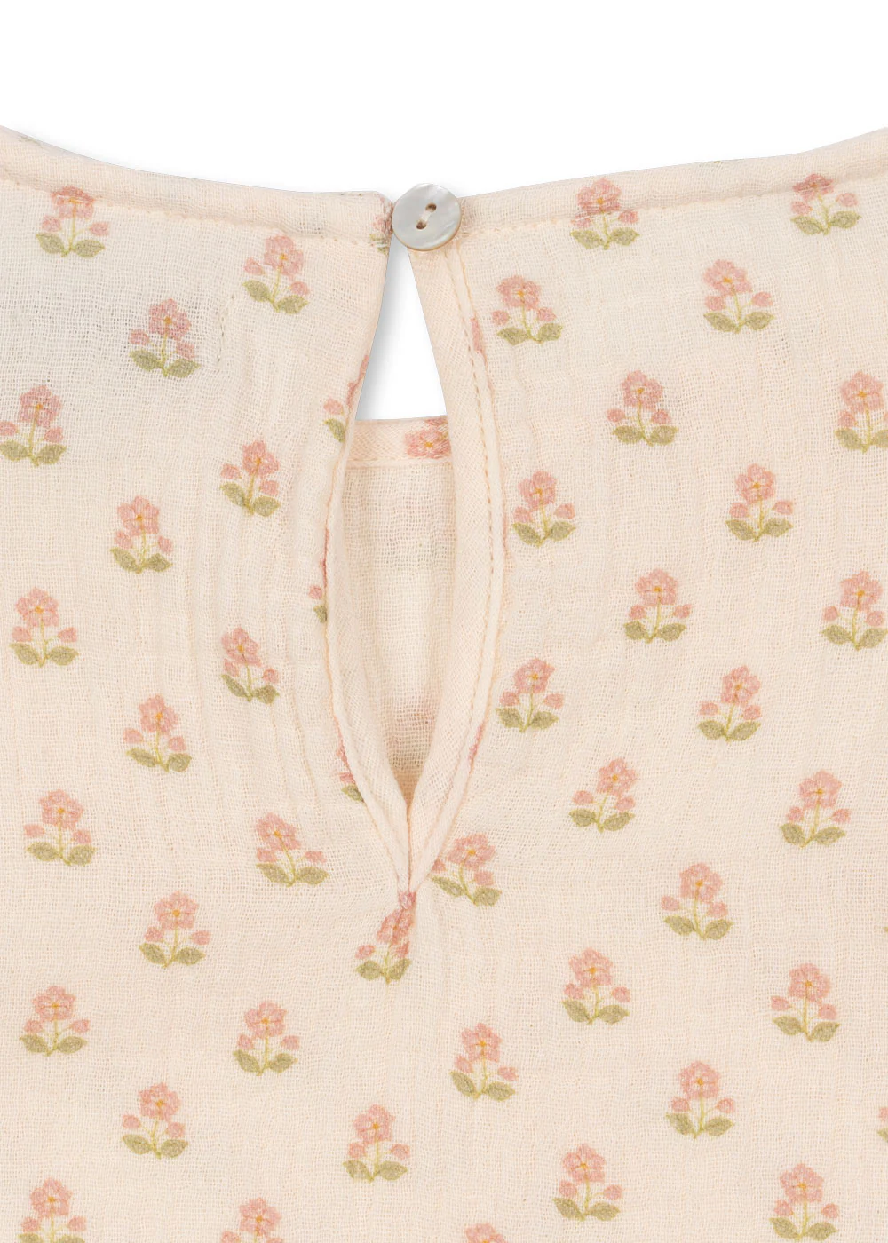 De all-over bloemenprint geeft een lieve uitstraling, terwijl de peplum pasvorm zorgt voor een speels rokje-effect. De top sluit met een knoopje aan de achterkant, wat het aan- en uittrekken makkelijk maakt.