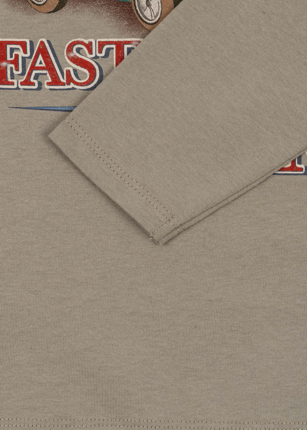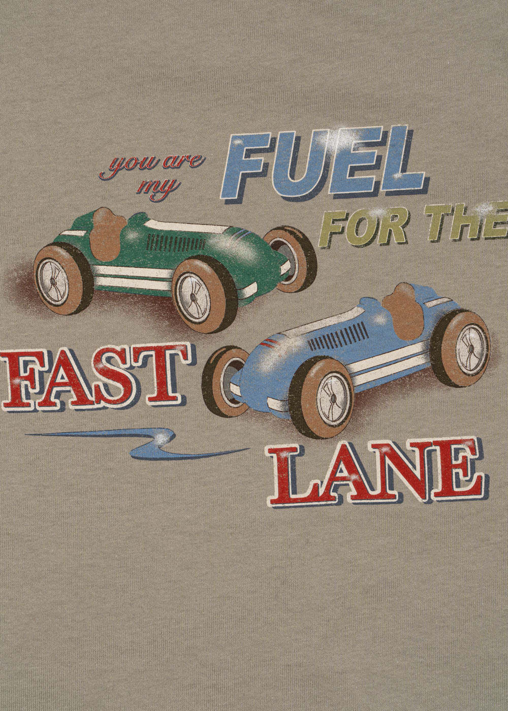 De Drey LS tee van Konges Sløjd is een stoere longsleeve die perfect past bij kleine snelheidsduivels. Het zachte T-shirt met lange mouwen is uitgevoerd in de kleur laurel oak en voorzien van een gave print met twee klassieke raceauto’s. Daarbij staat de tekst Fuel for the fastlane, die het shirt een speelse en sportieve uitstraling geeft.