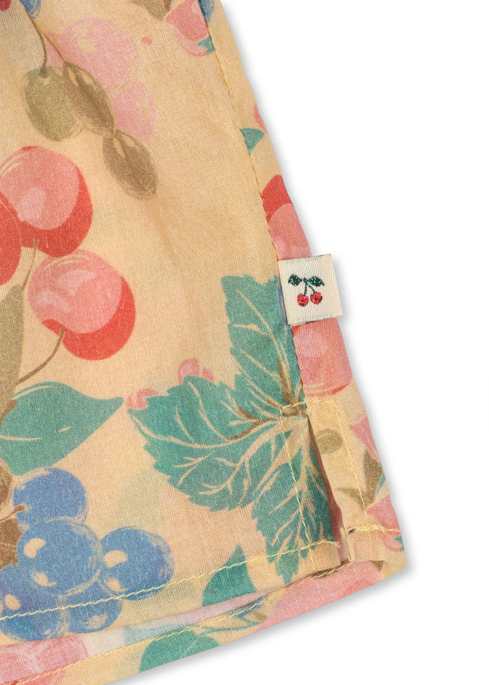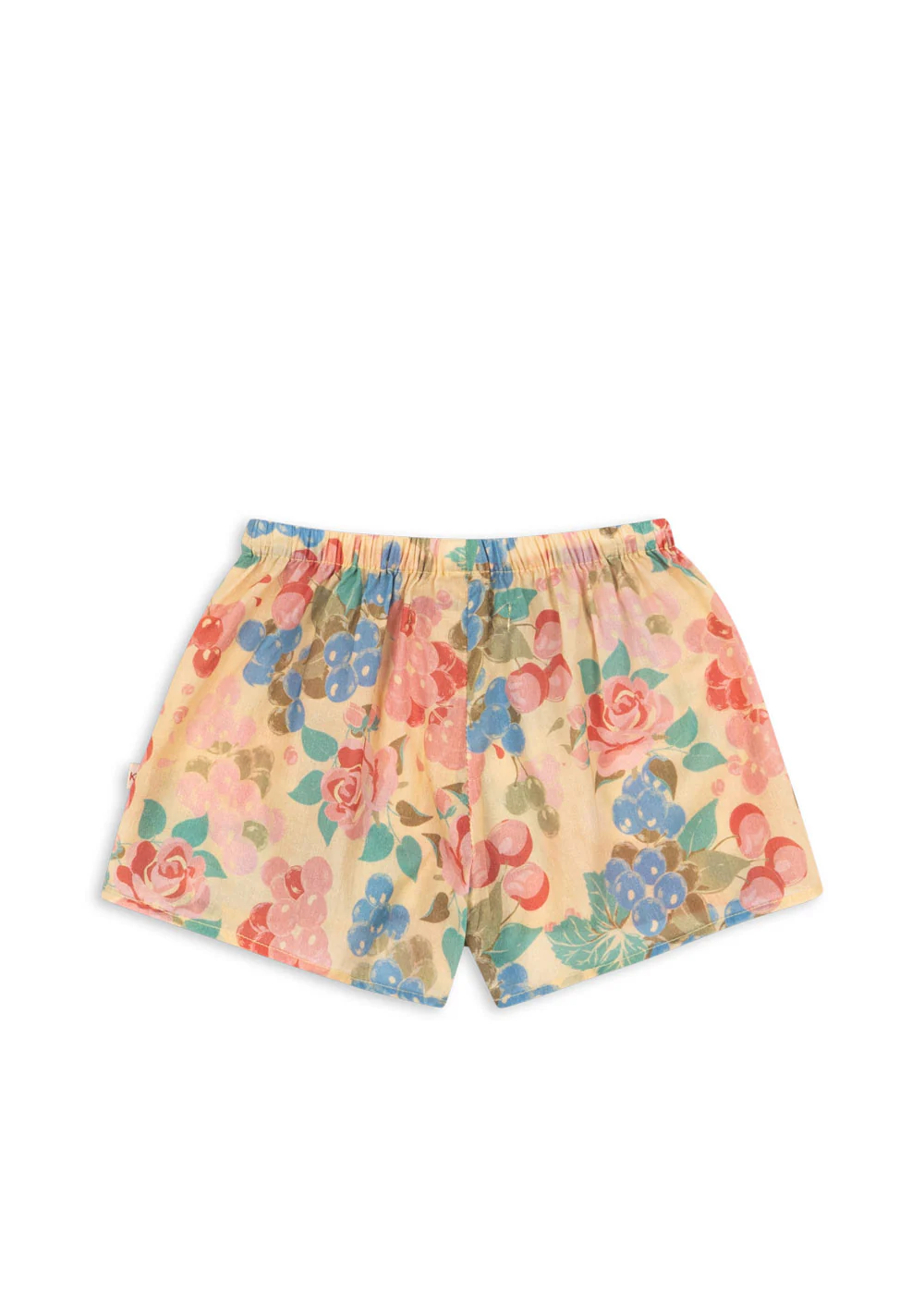 De Pacey shorts in Bloomiegrape van Konges Sløjd is gemaakt voor zonnige dagen. Deze zachtgele short met zomerse bloemen- en besjesprint heeft een luchtige uitstraling en voelt heerlijk licht aan.