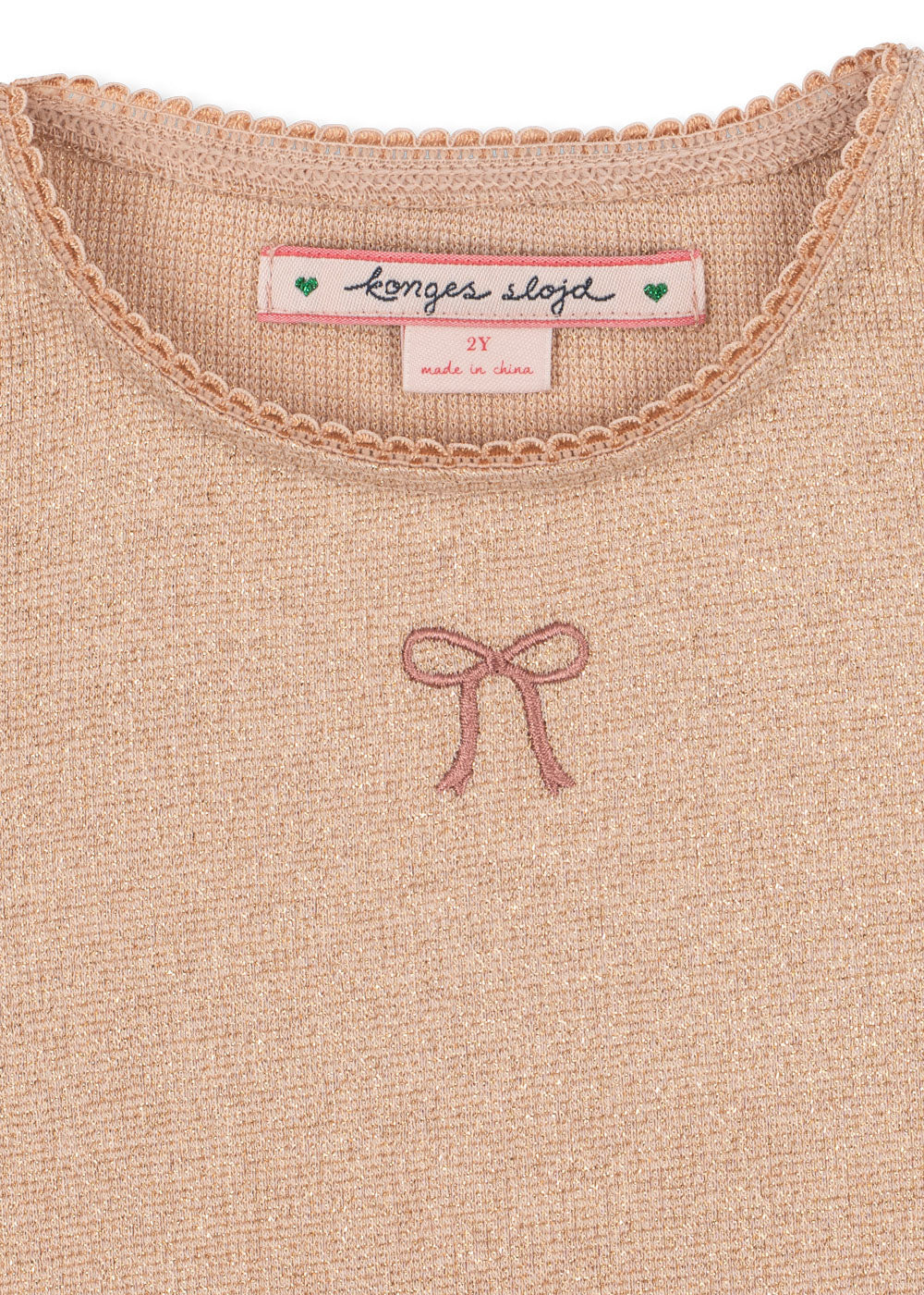 De Roli blouse van Konges Sløjd is een zachte longsleeve met een verfijnde uitstraling. De warme Cameo Rose tint met subtiele glans en het kleine strikje op de borst maken dit een lief en draagbaar item.