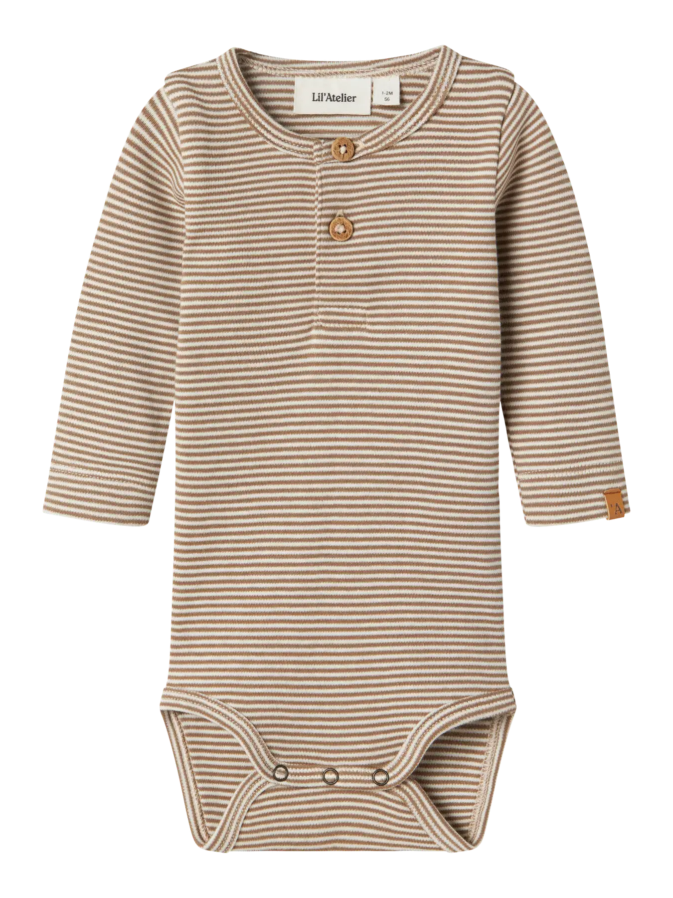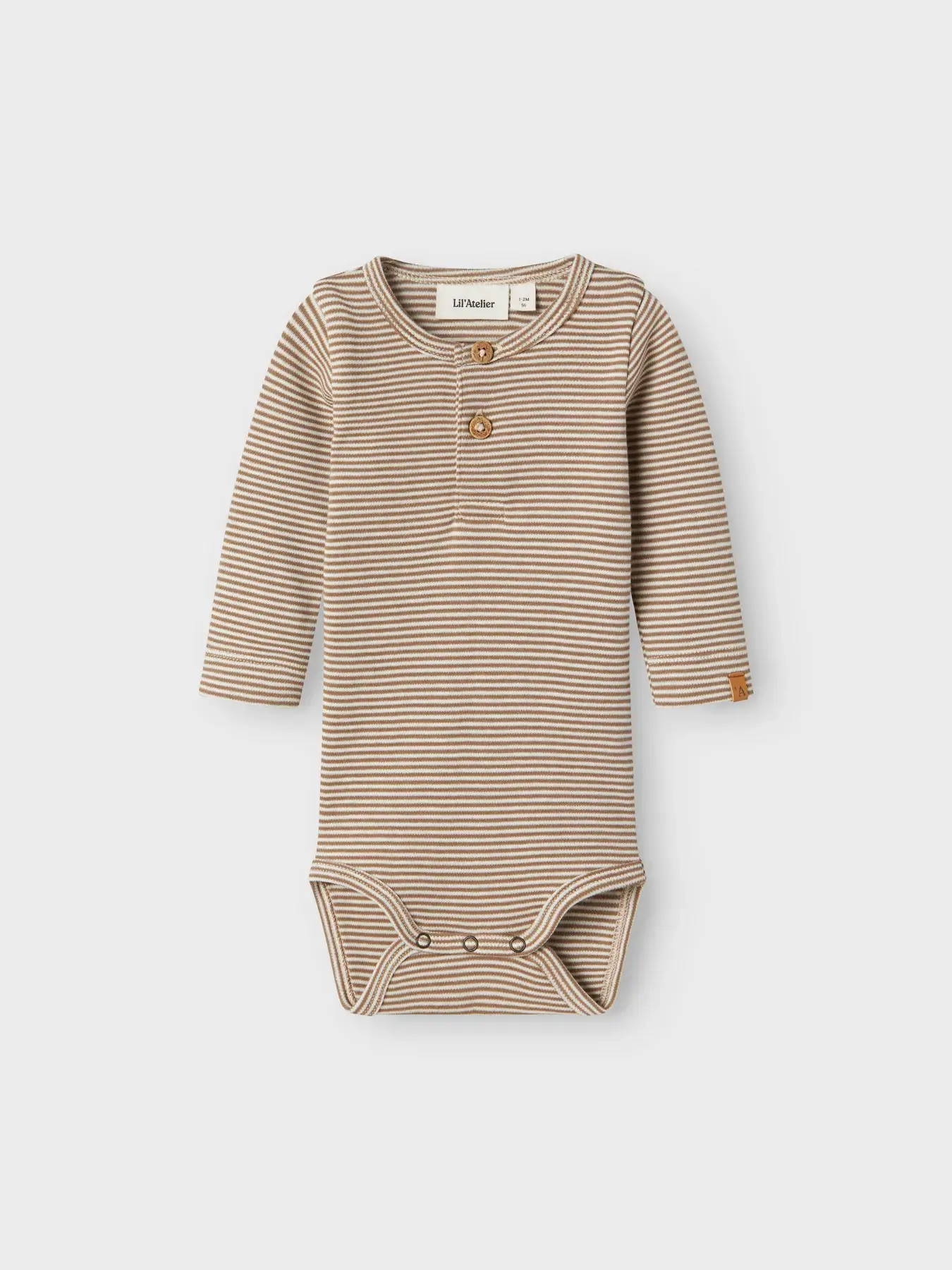 De Ohio LS Slim Body van Lil’ Atelier is een zachte en comfortabele bodysuit voor je kindje. Uitgevoerd in een beige kleur met subtiele bruine/sepia streepjes, wat zorgt voor een tijdloze en stijlvolle look.