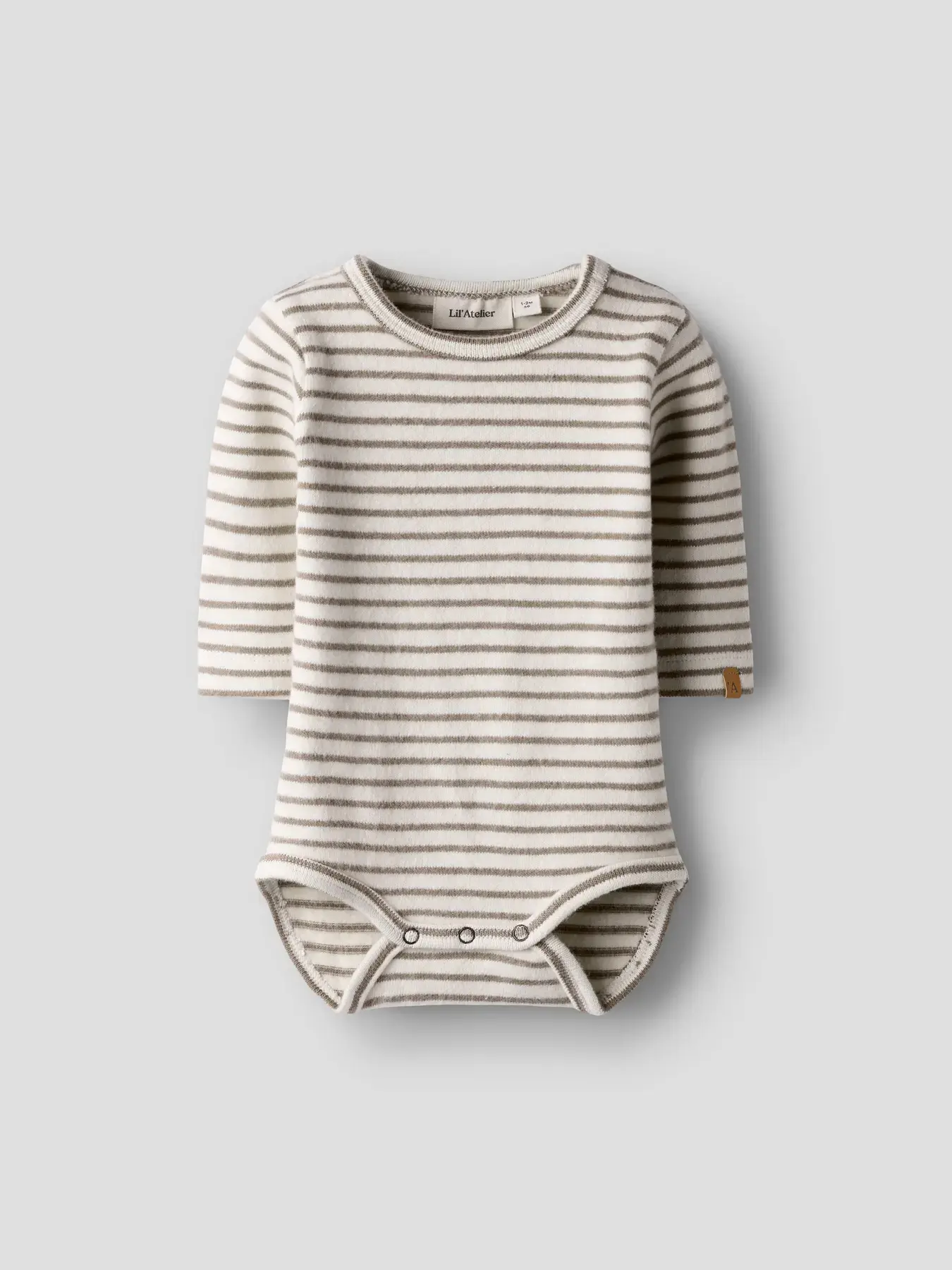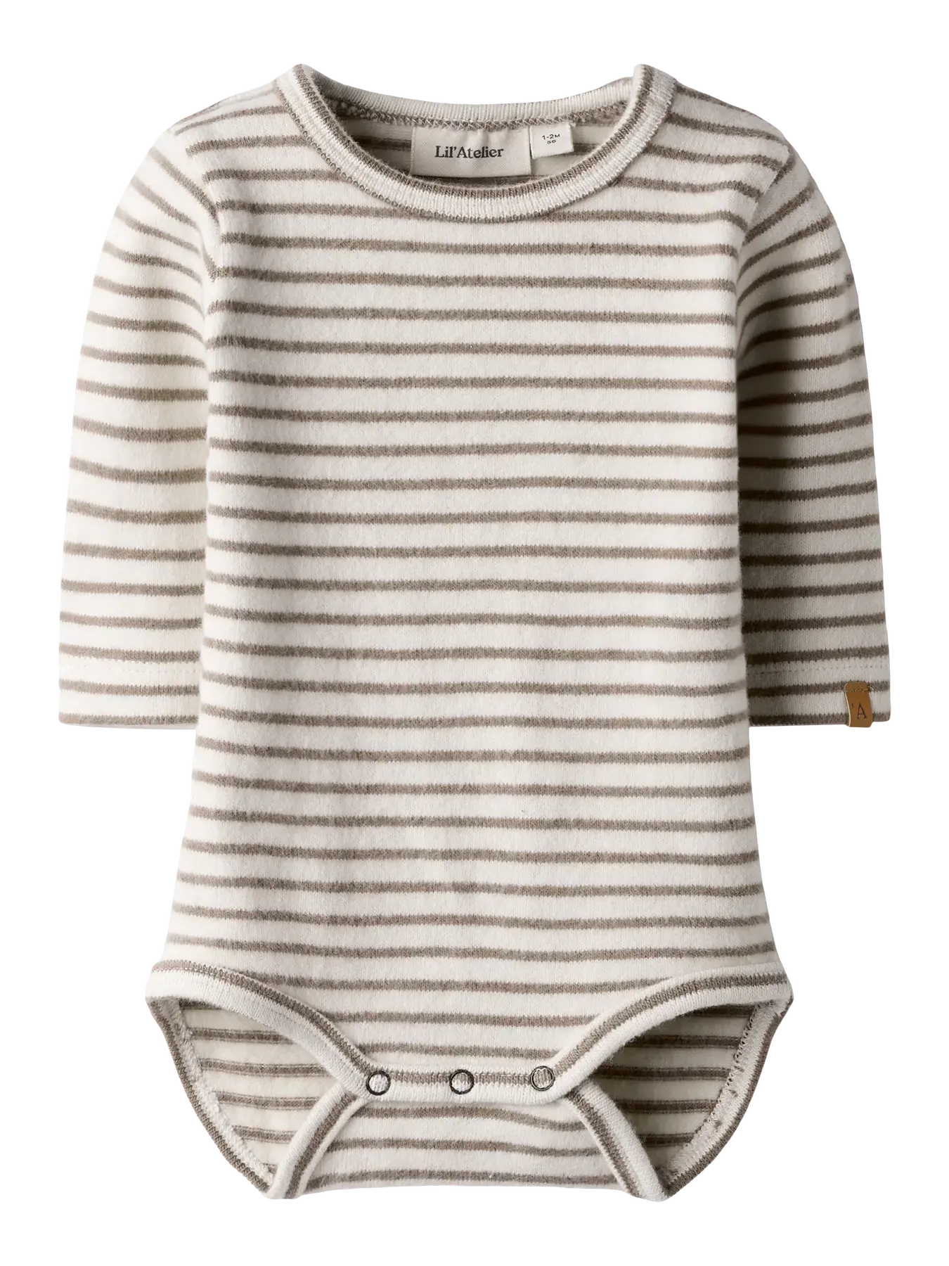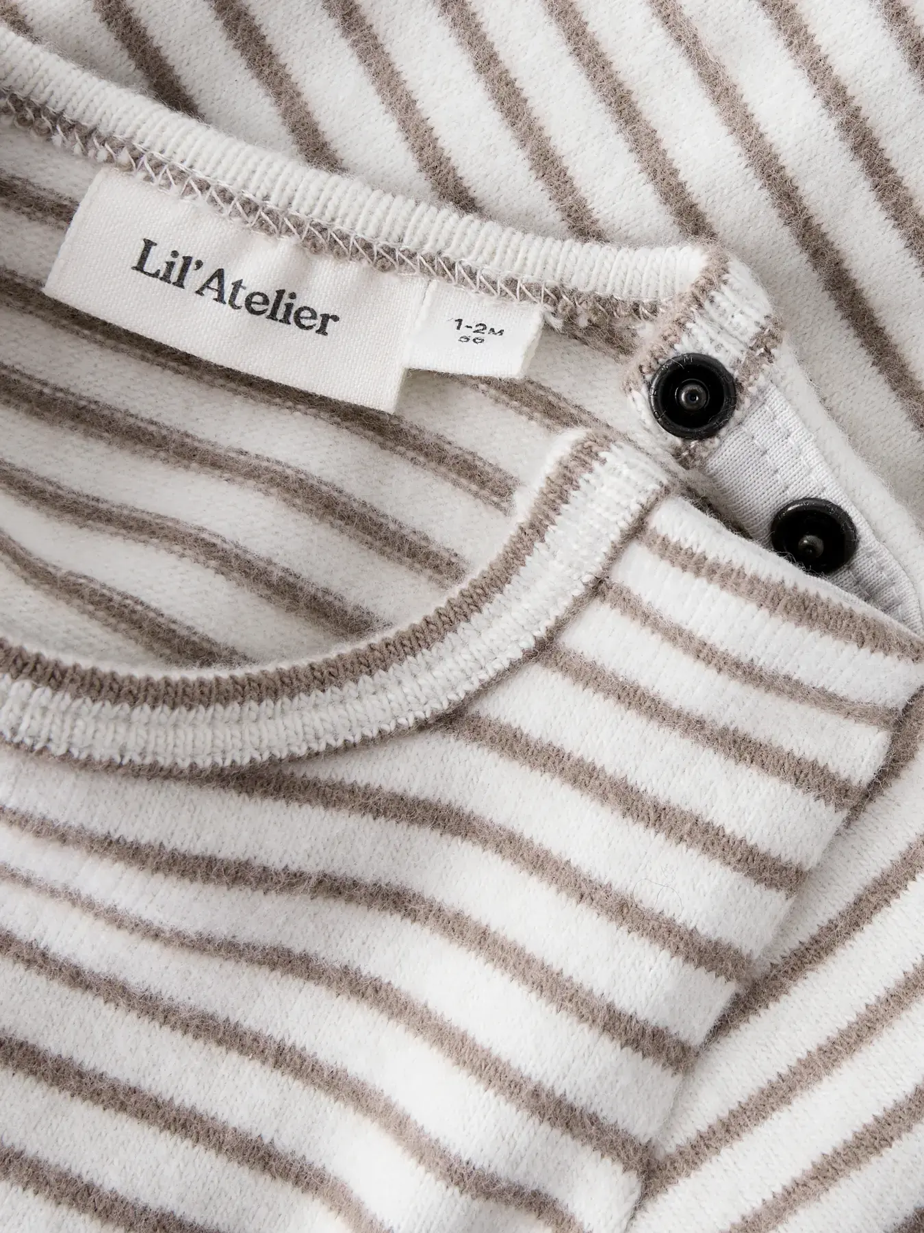 De gestreepte sepia tint is stijlvol en makkelijk te combineren met broeken, leggings of shorts uit de Lil Atelier collectie. Perfect voor dagelijks gebruik en activiteiten van baby tot peuter.