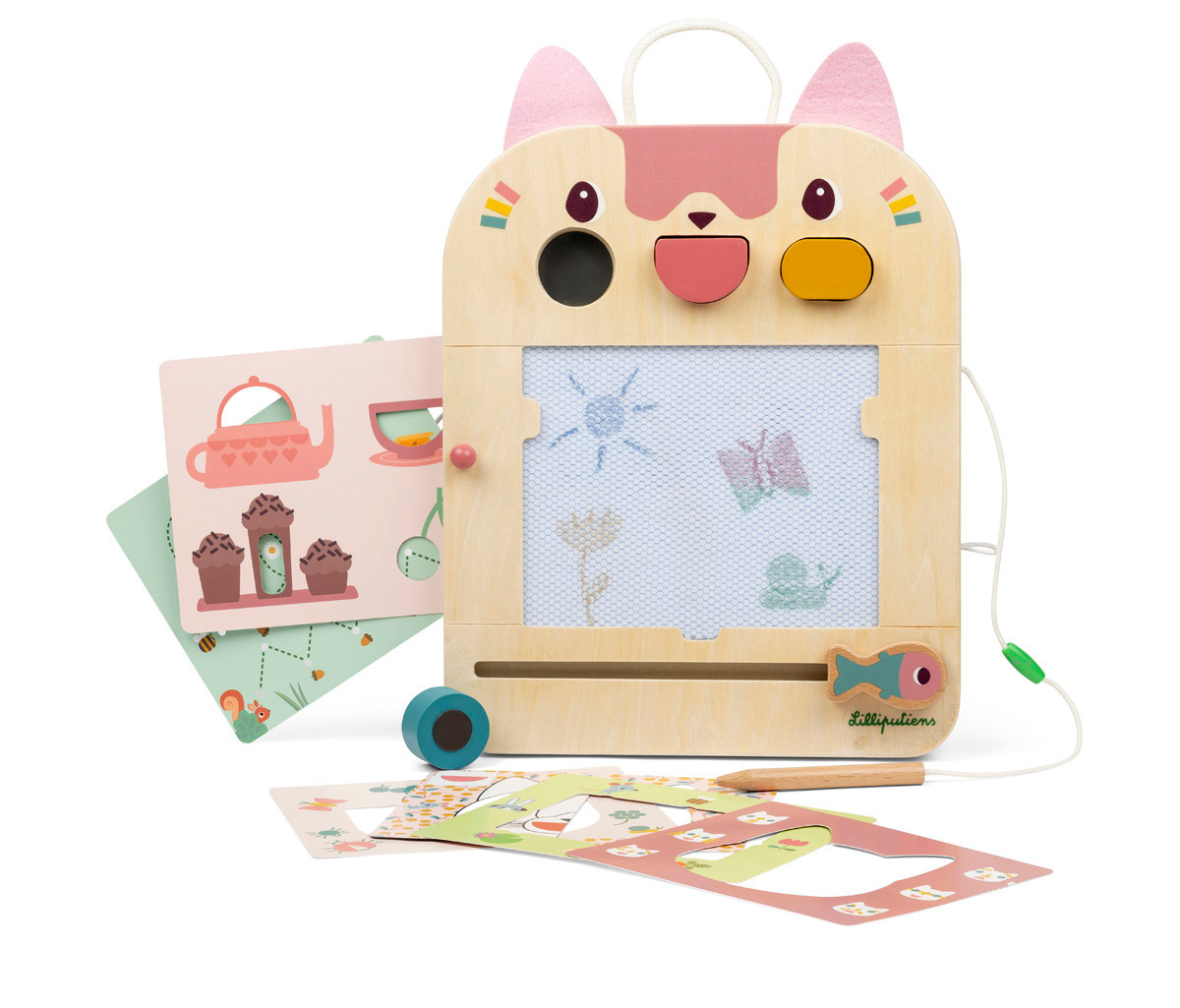 Klaar voor een nieuwe tekening? Schuif eenvoudig de vis heen en weer en het bord is weer helemaal leeg. Ideaal om fijne motoriek, creativiteit en concentratie te stimuleren, en door het compacte ontwerp gemakkelijk mee te nemen.