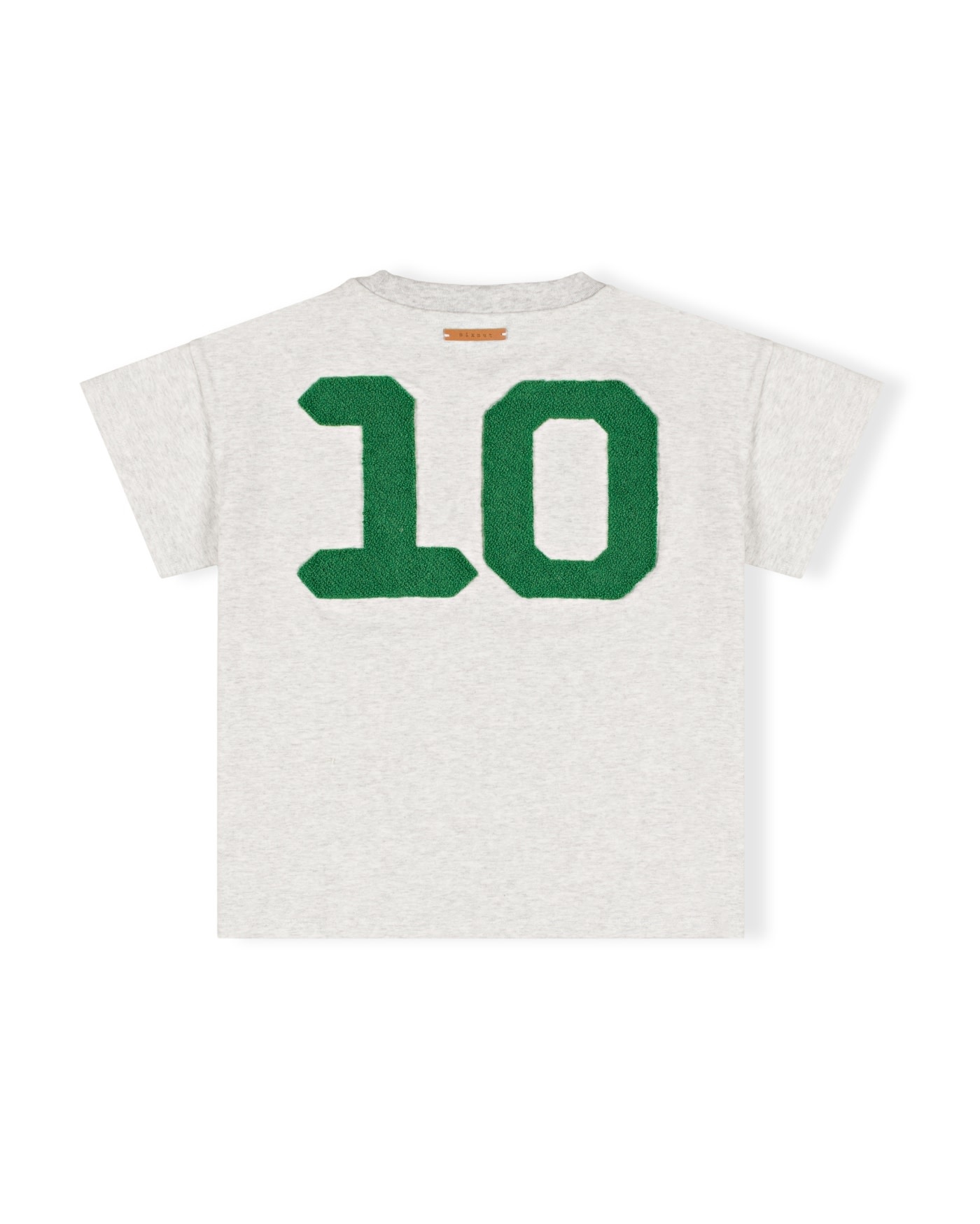 De 10 Top – Boys van Nixnut is een stoer jubileumitem uit de nieuwe zomercollectie en markeert het 10-jarig bestaan van het merk. Op de achterzijde prijkt een grote groene ‘10’ in zachte teddystof, die het shirt een speelse maar krachtige uitstraling geeft. Bovenaan de rug is het kenmerkende leren Nixnut-logo subtiel verwerkt.
