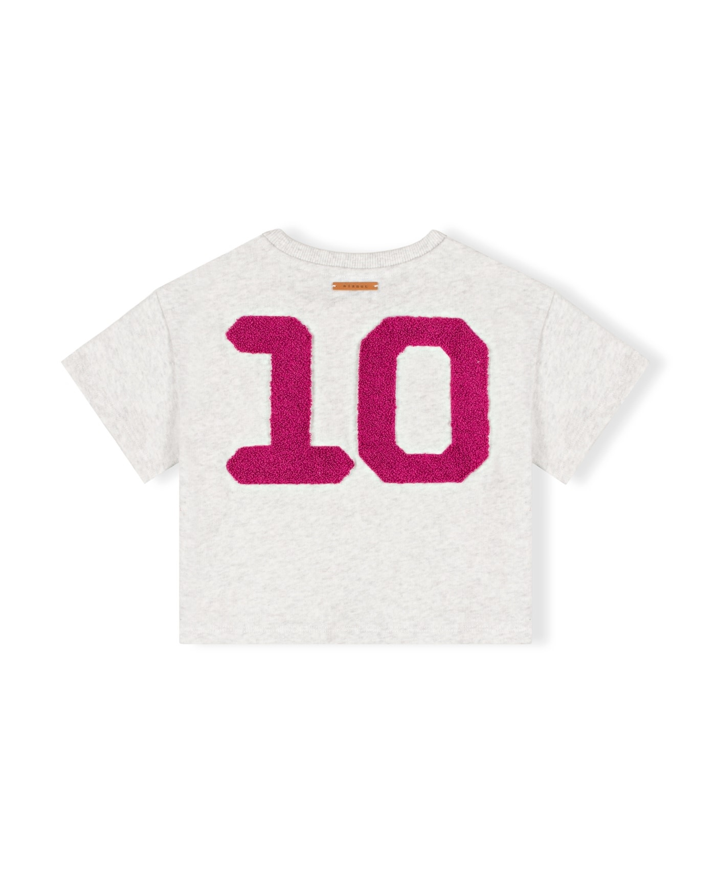 De 10 Top – Grey van Nixnut is een speciaal item uit de nieuwe zomercollectie en staat in het teken van het 10-jarig bestaan van het merk. Het grijs melange T-shirt heeft op de rug een grote roze ‘10’ als subtiele eyecatcher. Bovenaan de rug is het kenmerkende leren Nixnut-logo verwerkt.