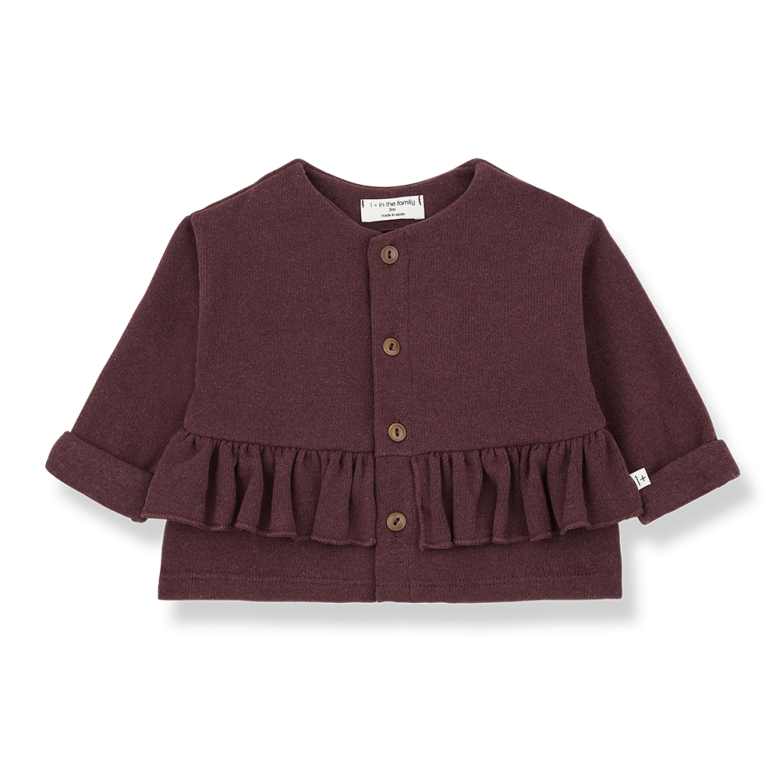 Het Vanessa girly jacket – Melanzana van +1 in the family is een prachtig meisjesvestje uitgevoerd in een diepe, warme donkerbruine tint. Deze kleur – melanzana – zorgt voor een chique en tijdloze look, perfect voor de herfst- en wintergarderobe van je kind.