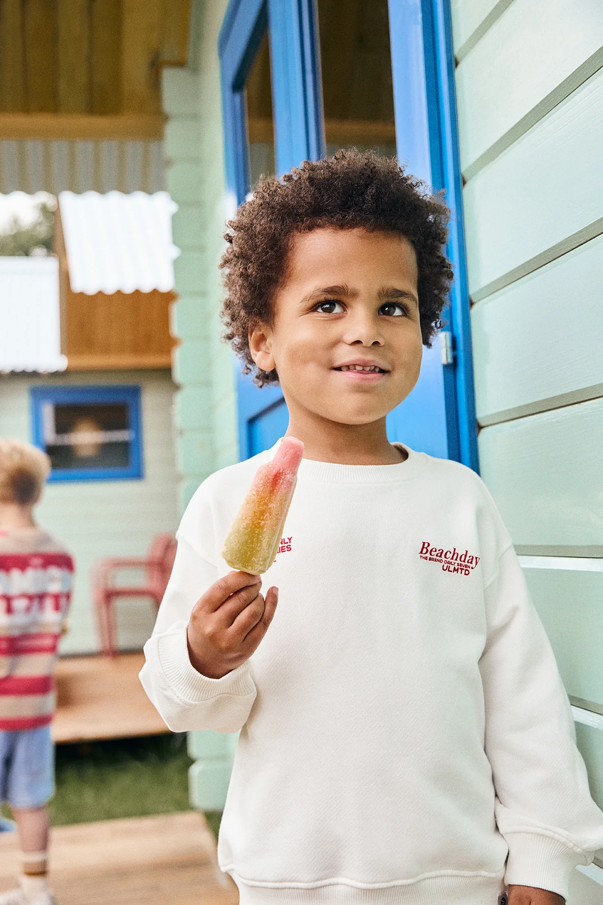 De Oversized Artwork Sweater – Beachday van Daily Seven is een echte eyecatcher voor kinderen met een eigen stijl. Deze witte sweater in de kleur Egret heeft een opvallende rode artwork print op zowel de voor- als achterkant, wat zorgt voor een speelse en creatieve uitstraling.