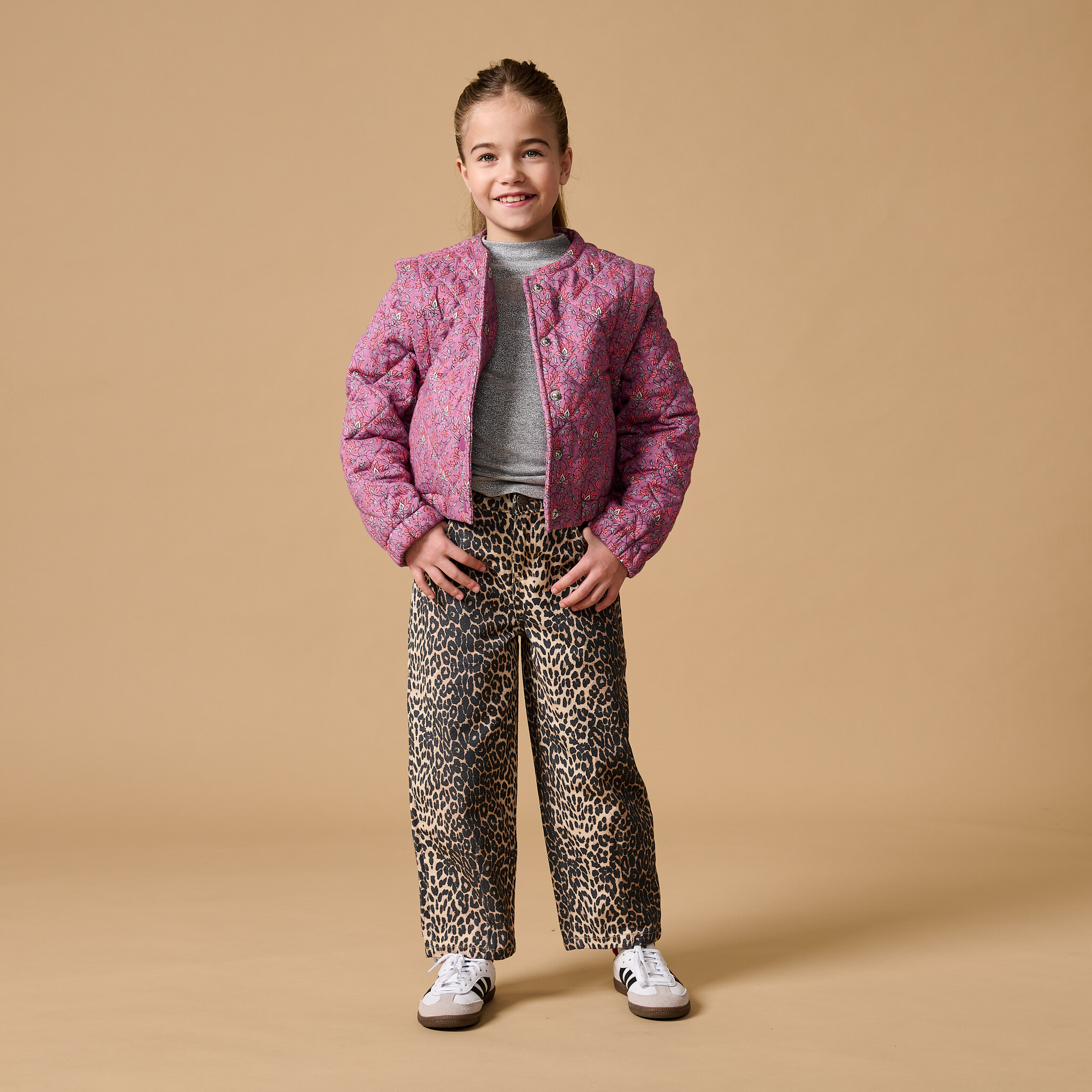 Stoere Ballon Fit Jeans van Petit Blush in Leopard AOP met comfortabele pasvorm en all-over leopardprint. Perfect voor een trendy najaarslook.
