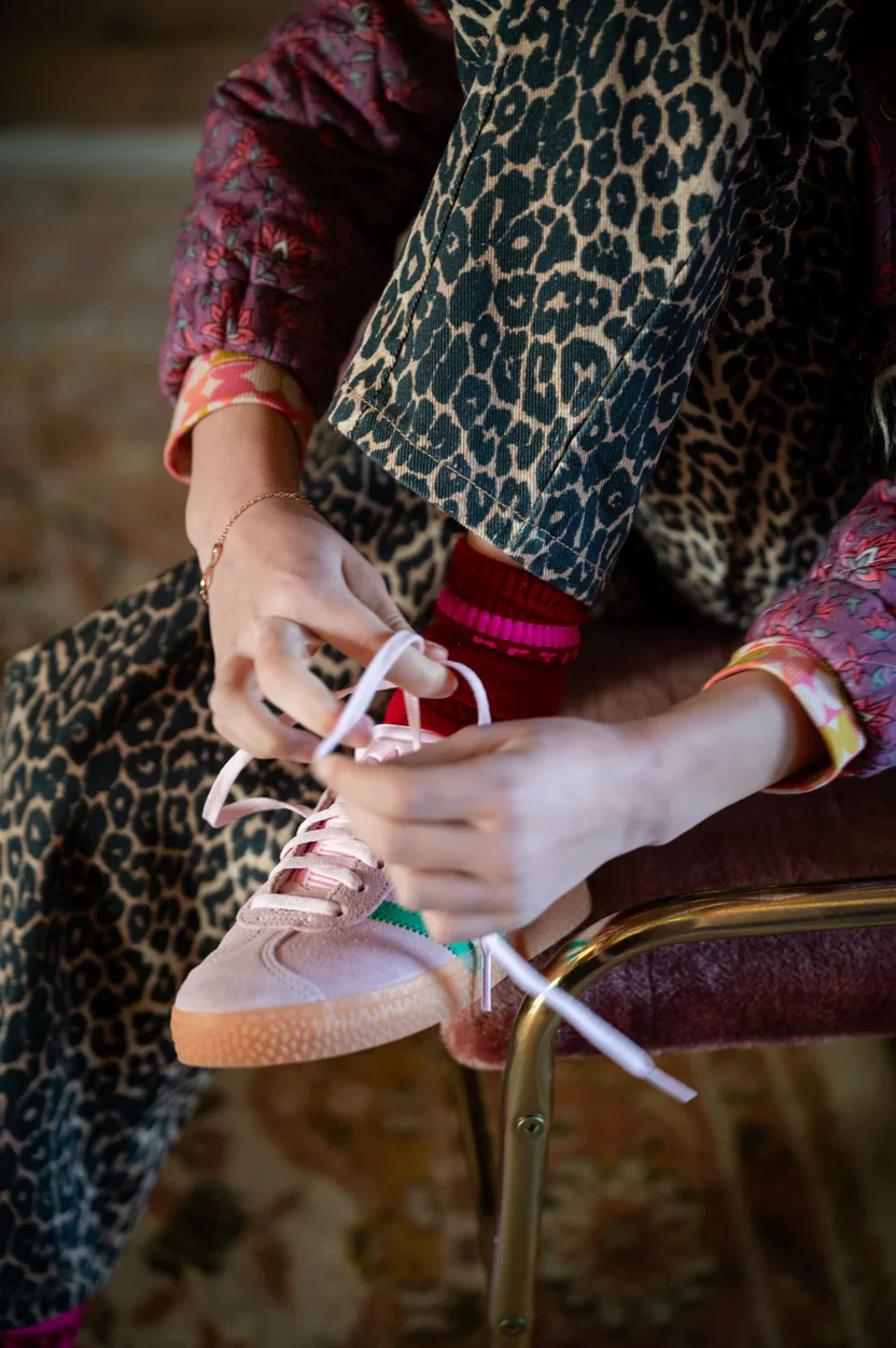 De Ballon Fit Jeans in Leopard AOP van Petit Blush combineert een stoere look met een comfortabele pasvorm. De all-over leopardprint geeft de broek een trendy uitstraling, terwijl de stevige maar zachte stof ervoor zorgt dat je kind zich de hele dag vrij kan bewegen. Perfect te combineren met een basic top of een sweater voor een speelse en fashionable outfit. Dit item is een echte bestseller binnen de collectie.