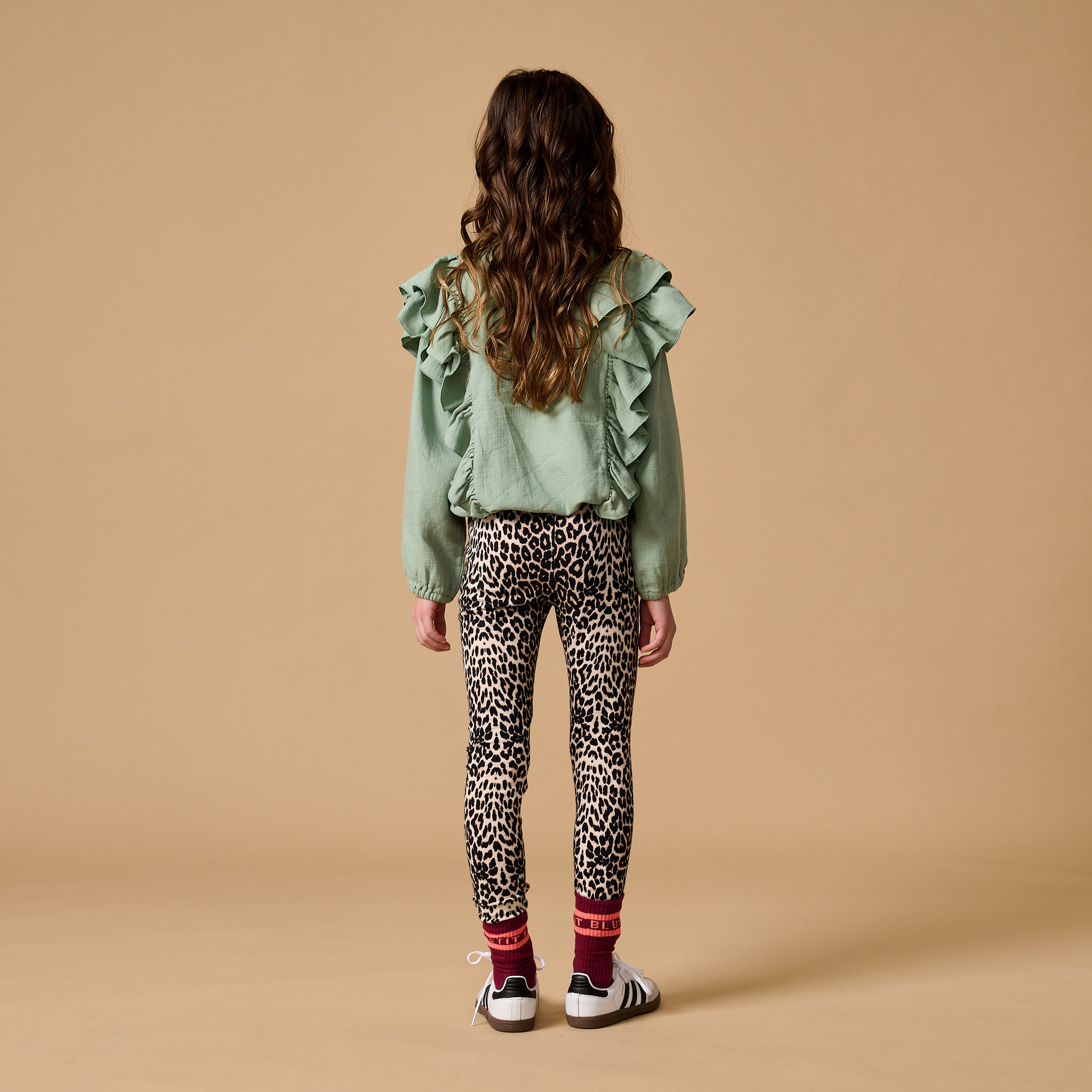 De Lola Legging in Leopard AOP van Petit Blush is een stoere en comfortabele legging met een all-over luipaardprint in warme bruintinten. De zachte en elastische stof zorgt voor ultiem draagcomfort, terwijl de comfortabele tailleband perfect aansluit. Combineer de legging met de Ruffle Blouse – Iceberg Green voor een girly, speelse outfit. De leopard print is ook verkrijgbaar in een stoere ballon fit jeans.