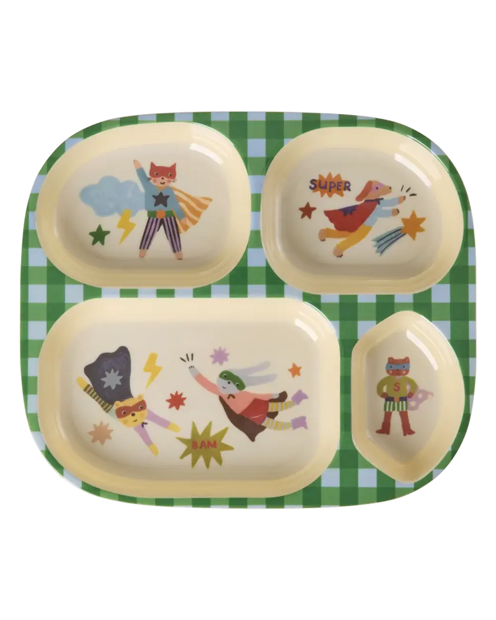 Rice Kids 4-vaks bord – Hero print (groen)