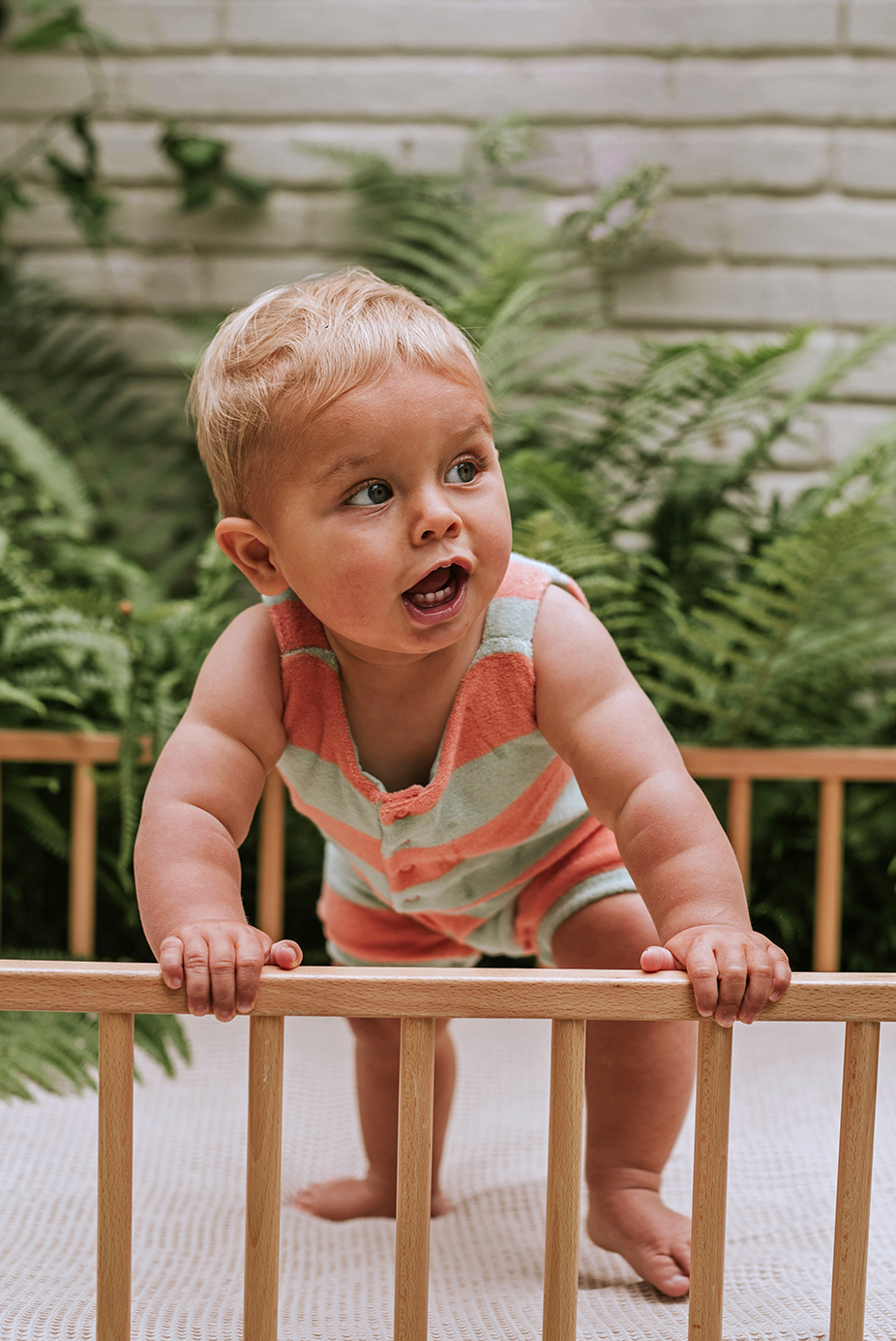 De jumpsuit is gemaakt van een zachte terry kwaliteit (badstof) en voelt licht en comfortabel aan. Ideaal voor baby’s die de hele dag bewegen, spelen en ontdekken, maar ook perfect om in te slapen of lekker te knuffelen.