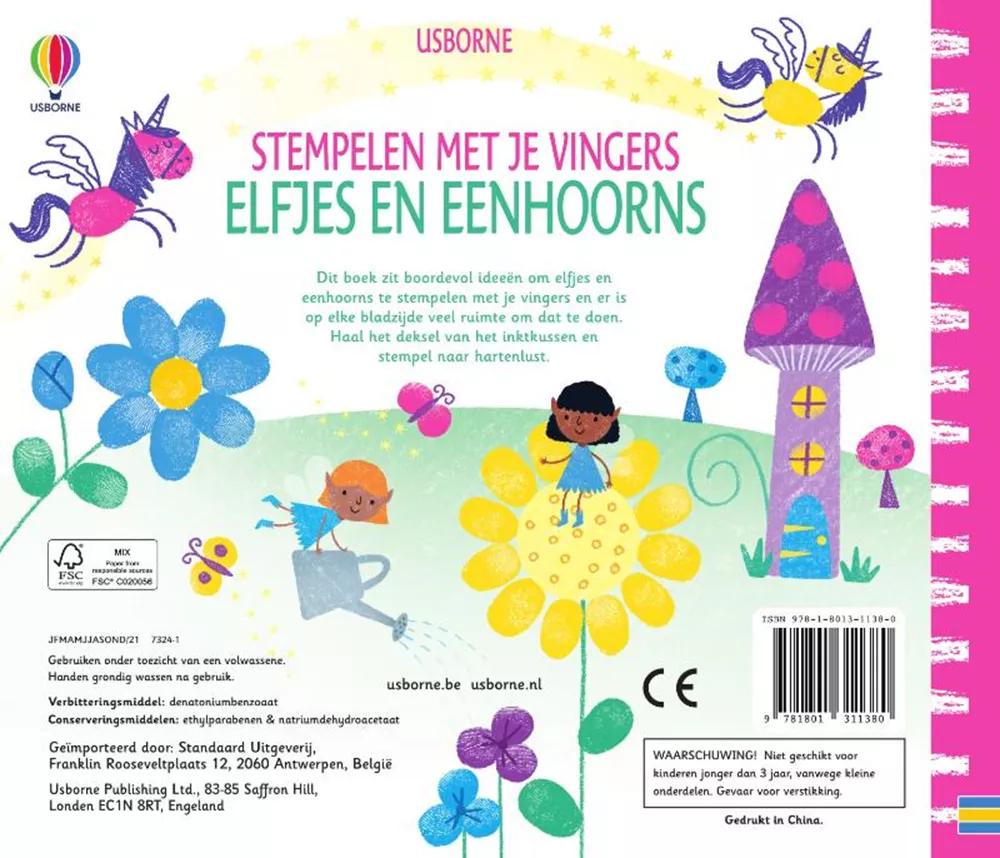 Met Stempelen met je vingers – Eenhoorn duiken kinderen in een wereld vol magie en creativiteit. Dit betoverende activiteitenboek zit boordevol scènes met elfjes, eenhoorns en fantasiewezens, die tot leven komen door simpelweg vingertopjes in het ingebouwde stempelkussen te dopen.